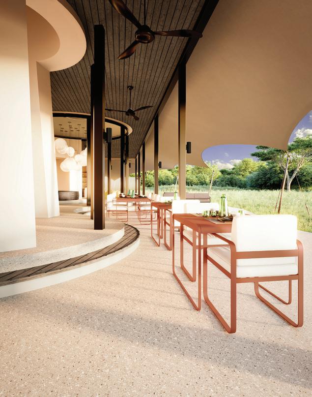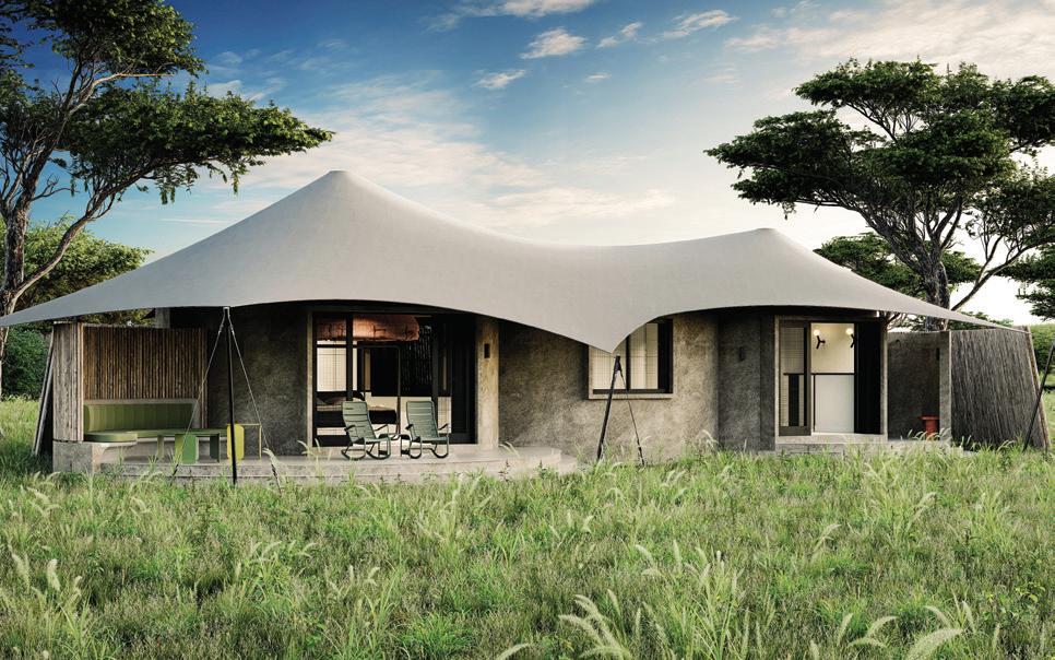 “STURDY AND BOLD, ELEGANT, YET HUMBLE, THE DESIGN TAKES INSPIRATION FROM KILIMANJARO, AS WELL AS THE ELEPHANTS, FEATURING A COMBINATION OF MATERIALS AND COLOURS THAT REFLECT THE SURROUNDINGS.”