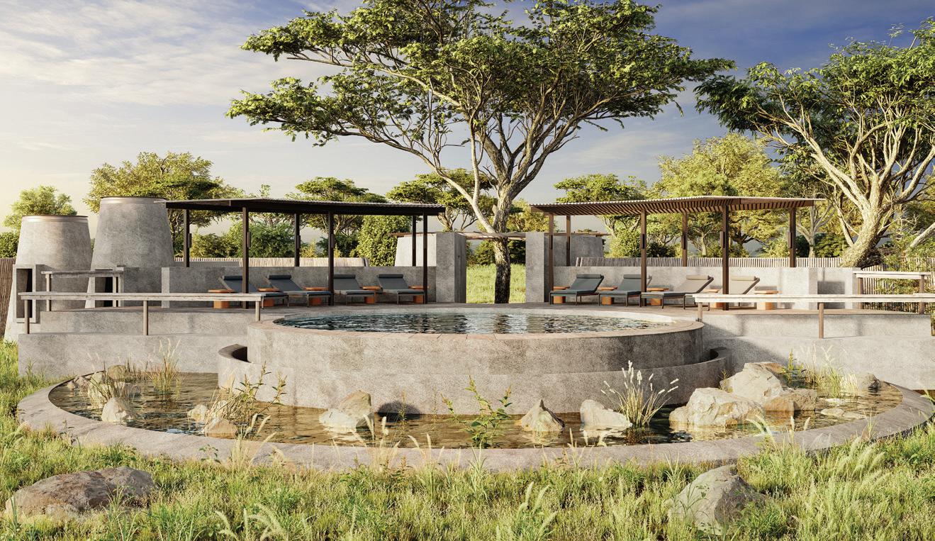 The guest area will feature indooroutdoor dining with an expansive baraza and a sundowner fire pit where guests can watch the light change on Africa’s tallest mountain throughout the day. The studios will house a safari shop, a fun games room for the whole family, a gallery and a makers’ studio for Kenyan artisans – along with a photographic studio to assist