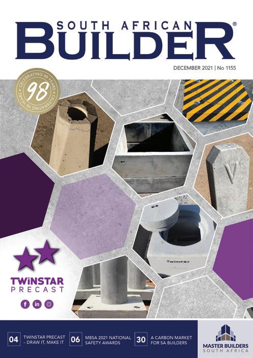 South African Builder is the official journal of Master Builders South Africa, established in 1923. The opinions expressed by contributors are not necessarily those of Master Builders South Africa. SA Builder is a registered trademark of Master Builders South Africa. Any use of this trademark without the express and written approval of Master Builders South Africa is prohibited. No material contained herein may be reproduced in whole or in part without the prior written permission of the publisher. SA Builder © 2022. All rights reserved.