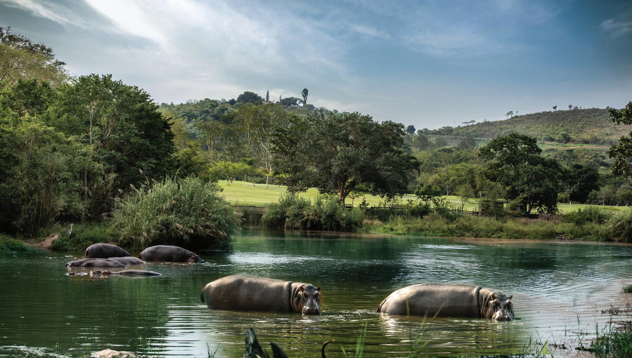 Graced with a sophisticated, modern African design, the 300-acre resort is 45 minutes from Sandton, on the northern slopes of the Magaliesberg Mountains. It boasts an 18-hole “bushveld” golf course, one that has been designed with environmental standards firmly in mind. The estate offers guests tranquility and security, the charm and atmosphere of country living, and a lifestyle experience to suit the aspirations of the whole family.