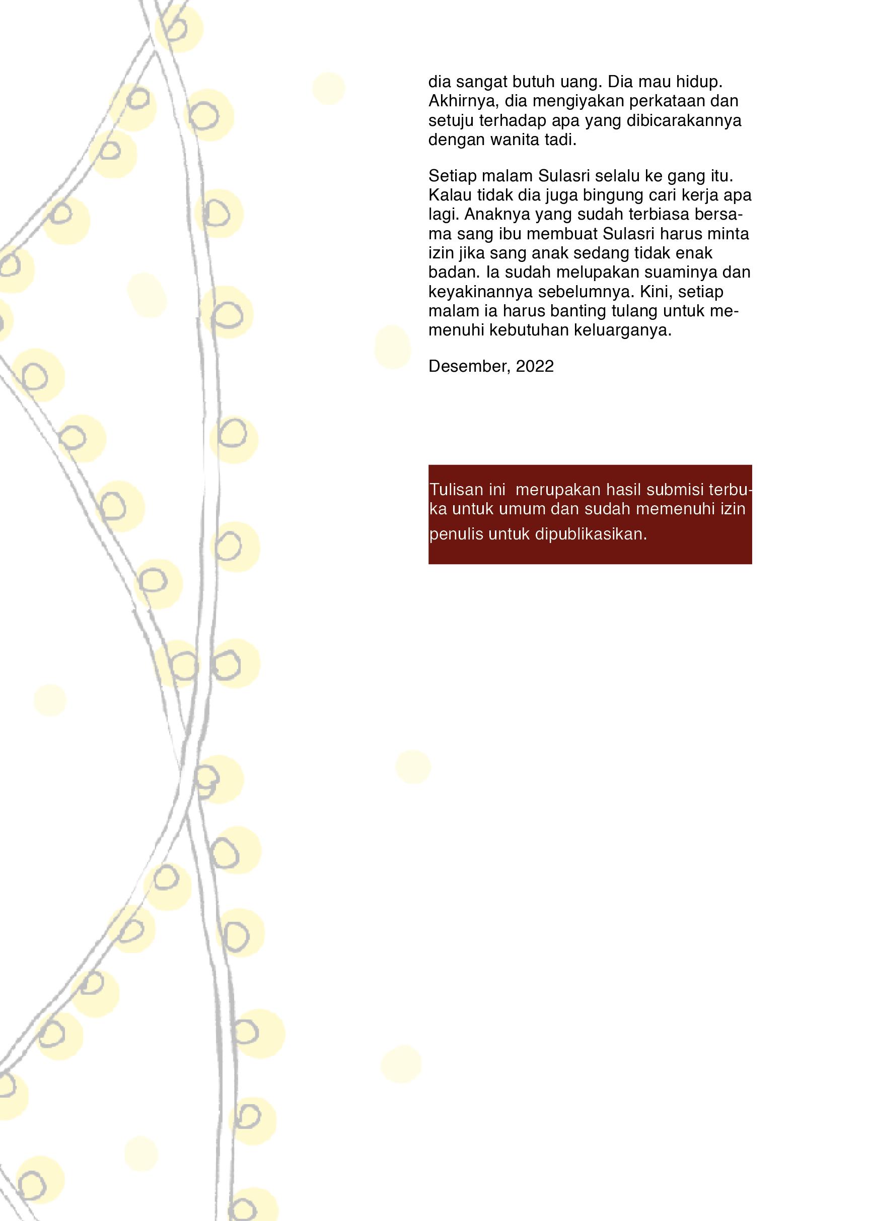 Edisi kali ini dipenuhi dengan tulisantulisan yang tidak hanya mengupas sisi estetika seni, tetapi juga menyoroti perannya sebagai kekuatan pendorong dalam politik dan masyarakat. Dari opini tentang seni politik yang berbicara lantang tentang keadilan sosial, hingga ulasan mendalam tentang bagaimana seni visual, musik, dan teater menjadi alat perlawanan, kami berharap setiap halaman dapat memberikan inspirasi dan perspektif baru bagi pembaca.
