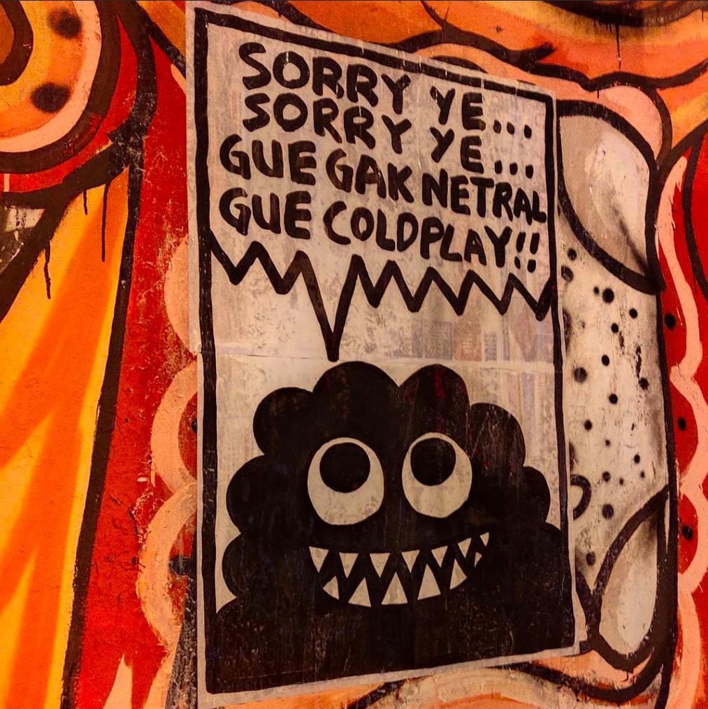 “Sukanya yang pertama karya saya semakin banyak dan tidak perlu pameran di ruang galeri. Karyanya ada dimana-mana, dan itu sudah seperti bagian pameran menurut saya, karena sudah menampilkan karya di ruang publik. Lalu yang kedua karena basic saya seni rupa jadi banyak tawaran-tawaran ikut pameran tanpa memasukkan open submission, jadi gak perlu ikut. Dan masih banyak, sih, seperti tawaran projek yang membutuhkan karya saya. Kalau apesnya, yah, harus berurusan dengan aparat. Semua diselesaikan dengan dialog, sih, sebenarnya. Karena kita ada yang mau dibicarakan di situ, sebab ini bukan hanya corat-coret