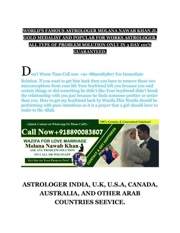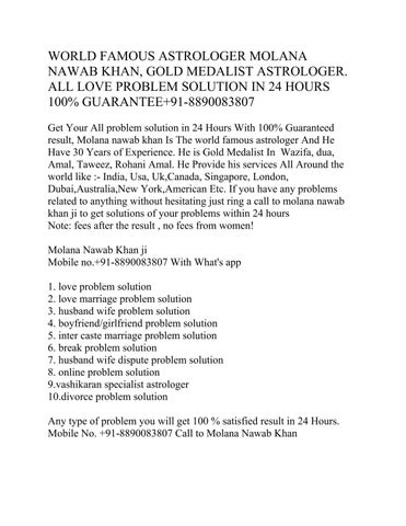Molana Ji Have Power of Muslim Ilm's & Amal That Use He Will Solve Your Problems In 4 Hours. If You Have Any Problem Than Consult With Molana Ji. Call & Whatsaap On +91-8890083807