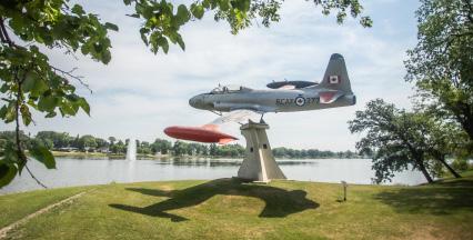 Island Park is home to two roadside attractions that greet visitors to the southern shores of Crescent Lake. A Dutch-style windmill was first erected on site in the 1950’s, a project commissioned by the large Dutch population that immigrated here after the second world war to show their appreciation to Portage la Prairie as their new home. While originally functional, the wings were eventually immobilized due to structural concerns. Not far from the windmill, a genuine Royal Canadian Air Force CT-133 Silver Star stands in tribute to the community’s deep-rooted military ties with the former CFB Portage la Prairie operational at Southport from 1942 to 1992.