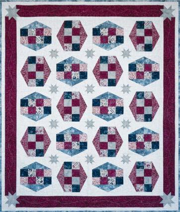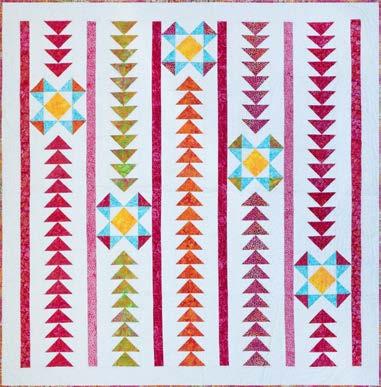 “Simple stars jump off the background in this easy quilt. Stitch-andflip star point proportions ensure the points will never be accidentally cut off. Connector blocks in the sashing are strip-pieced for faster, more accurate piecing.” - Joanne Kerton, Canuck Quilter Designs, LLC.