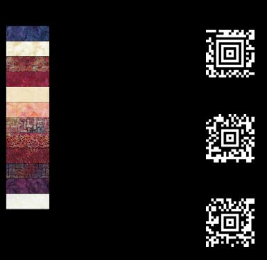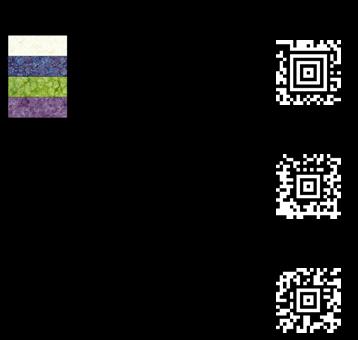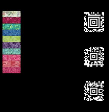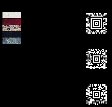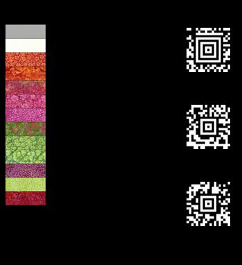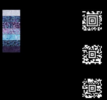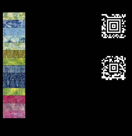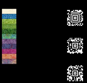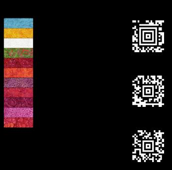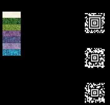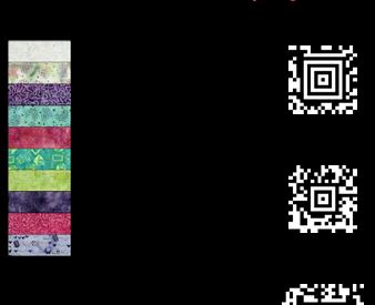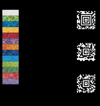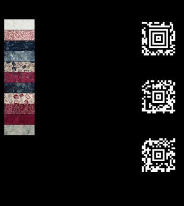 “Order All Fabrics” QR code will order all of the fabrics in the chart to meet the yardage requirements for the number of kits the shop would like; the shop will be given the option to include or exclude Backing and Binding fabrics. If a Backing or Binding fabric is a SKU that has been repeated elsewhere in the chart, a second bolt will be placed on order. Yardages will not be added together. Chart calculations are made with 11 yard and 14 yard bolts to account for varying bolt sizes. Large continuous cuts may require additional bolts.