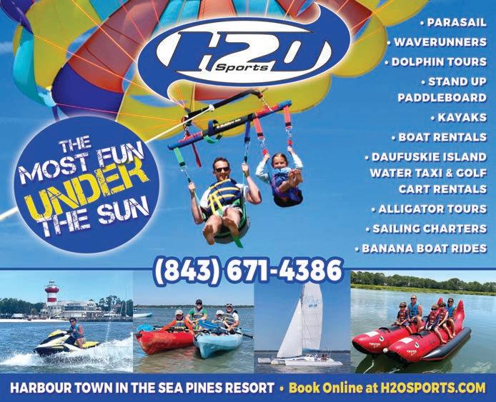 The Harbour Town Yacht Basin offers yearround private fishing charters that are led by the most e perienced fishing captains on Hilton Head Island. Just 10 minutes from the Atlantic Ocean, charters range from 3-hour inshore excursions to 8-hour offshore excursions. All items are provided, and catch will be cleaned at the docks. Reservations required. 149 Lighthouse Rd. For reservations and more information, call (843) 363-8335 or visit s i s.com i c s m i