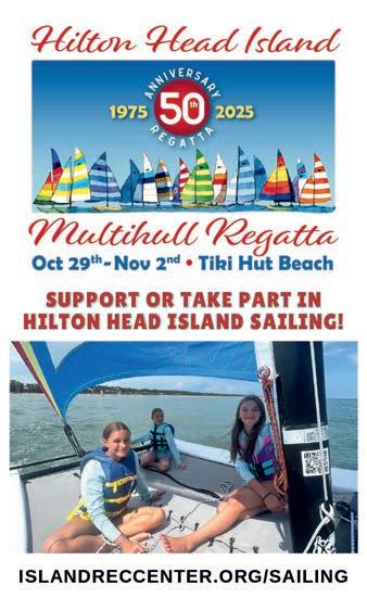 The Island Rec Center hosts the Hilton Head Multi Hull Regatta celebrating its 50th anniversary. Open to all Multi Hulls boats looking to race off the Hilton Head Island Beach in the Atlantic Ocean along with clinics and much more. The full schedule of events and clinics can be found at islandreccenter.org/ events/multi-hull-regatta