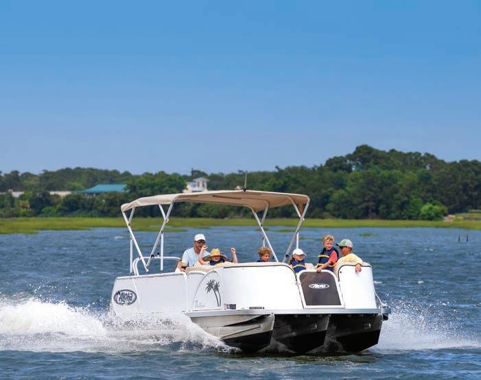 Shelter Cove Marina offers brand new luxury pontoon boats. The new luxury rental Aloha boats allow up to 12 people to enjoy the experience together. The boats feature a 9 ft. Sunbrella imini, armin PS depth finder, brand-new outboard Yamaha 150HP engine and more isit h o i os.com or call 866 22-6 6 .