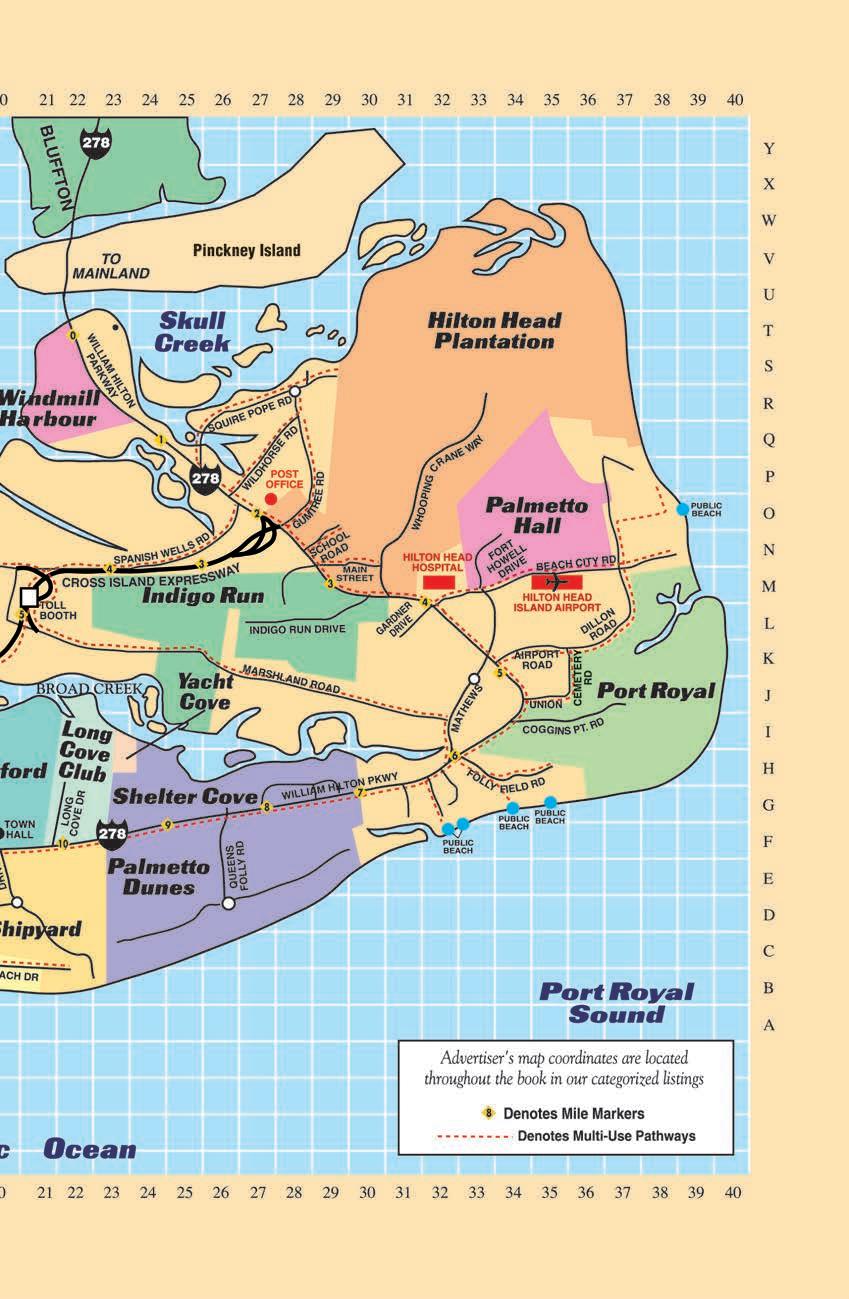 Our commitment at Island Events is to give you everything you need to enjoy our twelve-mile barrier island: dos and don’ts for interacting with Hilton Head wildlife, helpful hints for navigating our roads and paths, easy-to-remember (but important) rules and regulations, guides to our parks and beaches and more! Also in this April 2024 issue we’ve got this month’s “Highlights” and our Calendar of Events. If you still need more, take a look at our Dining, Shopping and Activities listings and at the awesome content at www.hiltonhead.com, www.hiltonheadisland.com, www.bluffton.com, www.savannah.com, www.beaufort.com and www.stsimonsisland.com