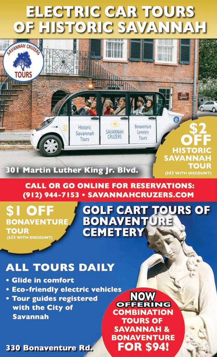 the Andaz Hotel at 14 Barnard St. All ages and fitness levels welcome. Price includes samples from at least six unique foodie spots in historic Savannah. Tours daily. See ad page 30.
