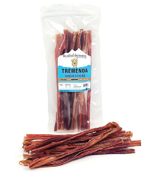 A hot seller, Tremenda Tough Sticks are made with 100% stinky beef bladder by Tuesday’s Natural. At Enchanted Lake Pets in Kailua.