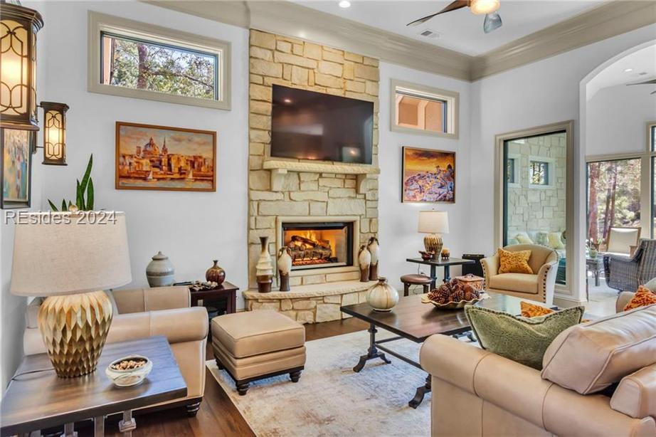 Experience the epitome of waterfront living & the convenience of a completely updated residence! This 1.69 acre property was built to entertain. Enjoy fiery Lowcountry sunsets while you soak in your private pool & hot tub, unparalleled direct waterfront access to the Broad Creek (& beyond) complete with your very own private deep-water dock, an outdoor kitchen, & backyard putting green This 4 bed, 4 full bath, 2 half bath home has ample room to entertain guests. The uniquely designed curved dining room and the chef’s kitchen with stainless steel double ovens, gas range, & spacious fridge will inspire you to host dinner parties.
