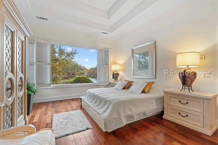 A spectacular water view that flows like a river - this stunning Sea Pines Estate offers over 3,000 sq. ft. of refined coastal living on one of Hilton Head Island's most prestigious streets Gorgeous hardwood floors lead you through a light-filled, open-concept interior with panoramic water vistas from nearly every room. The expansive living space includes a sophisticated fireplace with custom mantle and seamless flow to a chef's kitchen and elegant dining area. Entertain outdoors on the grand composite deck and screened gazebo (with heat for year-round enjoyment) The primary suite offers serene water views, spa-inspired bath with dual vanities, and an indulgent jacuzzi tub. Two guest suites provide privacy and luxury, each with its own full bath. A versatile bonus room is perfect as a media retreat, private office, or fourth bedroom. The large homesite offers room to design your dream pool and outdoor sanctuary. Experience the pinnacle of Lowcountry luxury - where tranquility meets timeless design.