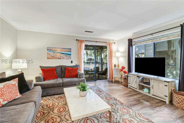What a great location for this spacious 3 BR, 3.5 Bath Villa! The best of HHI is an easy walk or bike ride! Head to the beach, Coligny Plaza, or Low Country Celebrations Park. This is a perfect place to live, host friends & family, or use as a 2nd home or vacation rental. The 2nd-floor Springwood Villa boasts LVP, SS appliances in the fully equipped kitchen, a laundry/utility room & 3 ensuite full baths & a half bath in the main living area. New HVAC installed in 2024! Enjoy the lagoon & pool views from your balcony or explore the surrounding areas of the island. There are also 2 dedicated parking spots and an exterior storage closet.