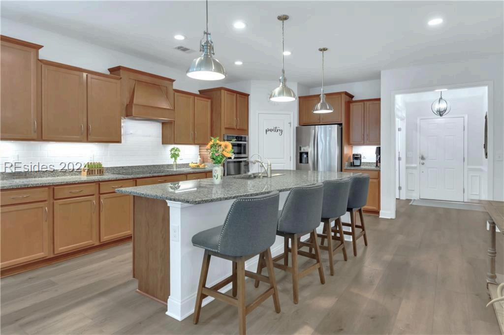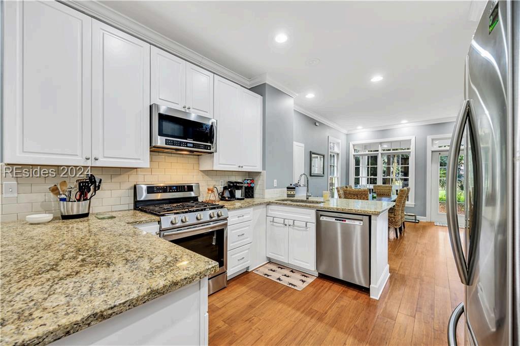 Coastal Charm abounds in this Newly Remodeled home in the Upscale Gated Baynard Park community. The inviting entry foyer leads to an expansive Open concept, light & bright floorplan Shows like a model home! The kitchen has an abundance of cabinets, pantry closet, oversized granite center island w/seating, large dining & an extended sunroom New upgrades include: all NEW wide plank LVP flooring , neutral paint, New fans, New interior lighting, New lawn & extensive landscaping Nestled on a Large Lot with wooded views. Community pool, pavillion, fitness center, tennis, pickleball, picnic area & more! Private pathway to River Ridge Academy
