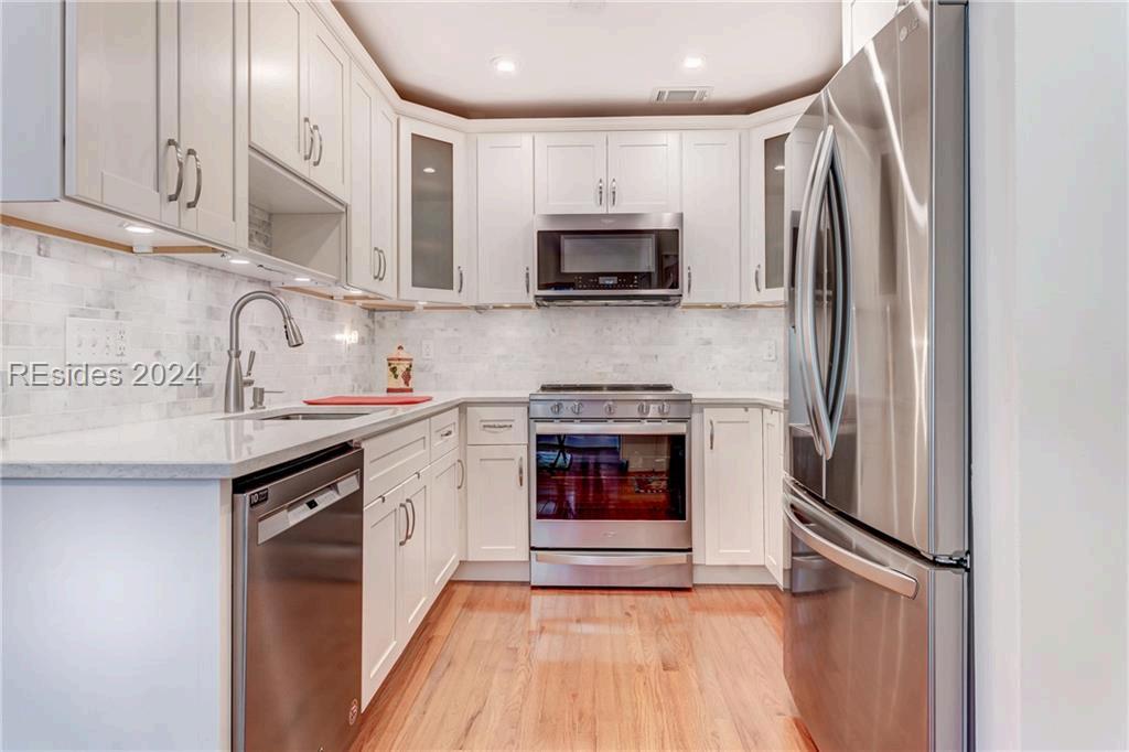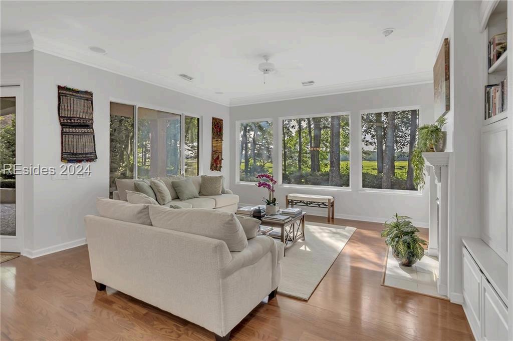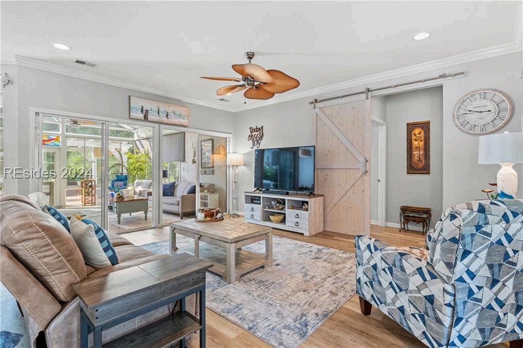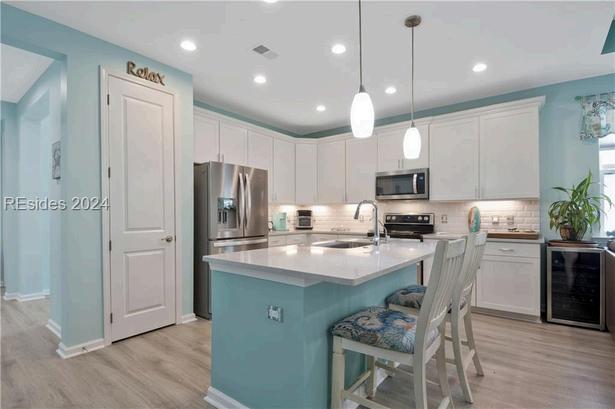 Recently remodeled, nestled in the lush marsh landscape of HHI's prestigious Broad Creek Landing This impeccable 3 BR, 2 BA residence exudes elegance & sophistication Perfectionist's touch in every detail, starting with the exquisite hardwood oak flooring that flows seamlessly throughout. Upgraded moldings, kitchen equipped with modern appliances, one-car garage, workshop with ample storage. Renovated BA provides a spa-like retreat The main BR is a true sanctuary, featuring a generous vaulted ceiling and an adjacent sitting room. The prime location offers convenient access to shopping, exceptional dining options, and vibrant beach life. 3