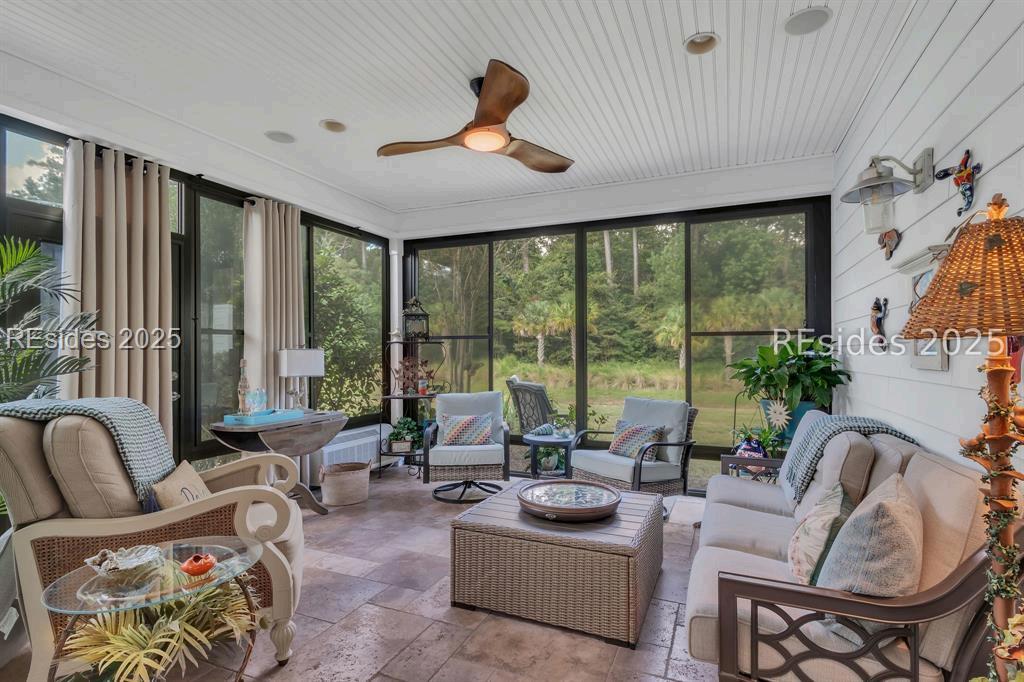 A spectacular water view that flows like a river - this stunning Sea Pines Estate offers over 3,000 sq ft of refined coastal living on one of Hilton Head Island's most prestigious streets Gorgeous hardwood floors lead you through a light-filled, openconcept interior with panoramic water vistas from nearly every room The expansive living space includes a sophisticated fireplace with custom mantle and seamless flow to a chef's kitchen and elegant dining area. Entertain outdoors on the grand composite deck and screened gazebo (with heat for year-round enjoyment). The primary suite offers serene water views, spa-inspired bath with dual vanities, and an indulgent jacuzzi tub. Two guest suites provide privacy and luxury, each with its own full bath A versatile bonus room is perfect as a media retreat, private office, or fourth bedroom The large homesite offers room to design your dream pool and outdoor sanctuary Experience the pinnacle of Lowcountry luxury - where tranquility meets timeless design