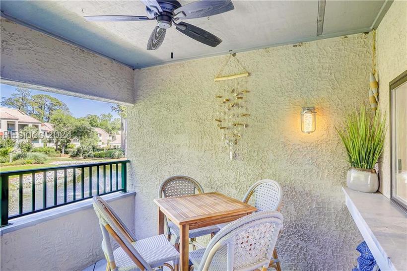 A beautiful Sunset view from this top floor end unit villa C318. Open floor plan 3 bedroom, 2 bath, hardwood floors, lovely cabinetry with granite, in the remodeled kitchen The living room has a fireplace and opens to a large 218 sqft Carolina room, heated and cooled with newly installed hurricane proof tinted windows (SQFT not included). 2 Full baths completely remodeled. A private pool and tennis court Boaters walk to Skull Creek Marina Enjoy all Hilton Head Plantation Amenities, including a lazy-river pool. A lovely villa and a perfect location. Don’t miss this Opportunity!