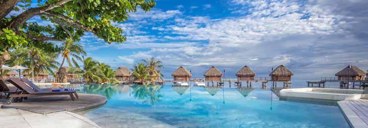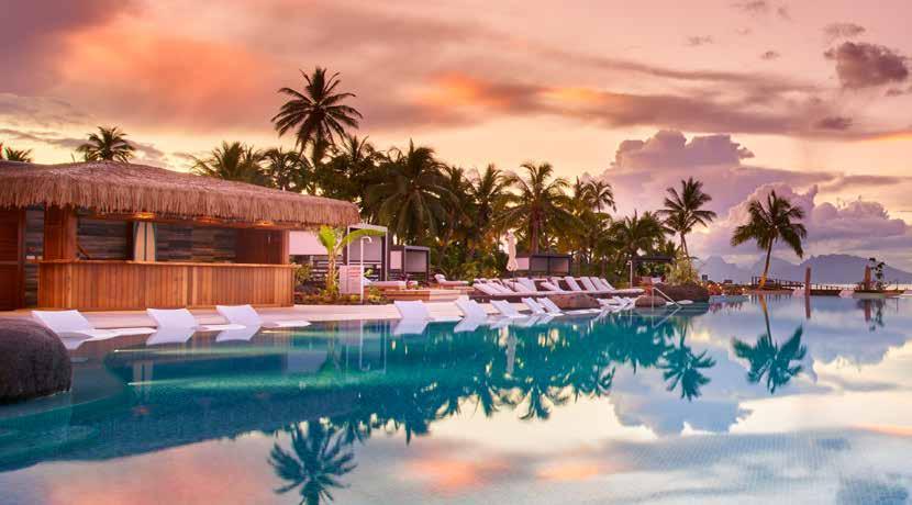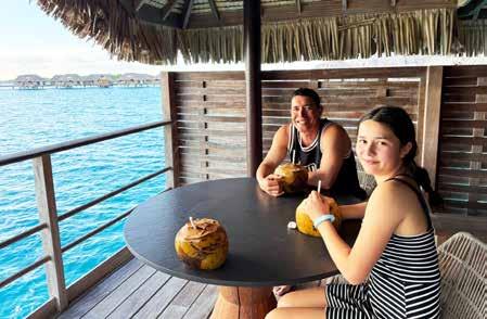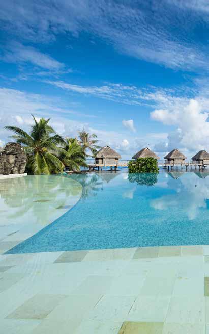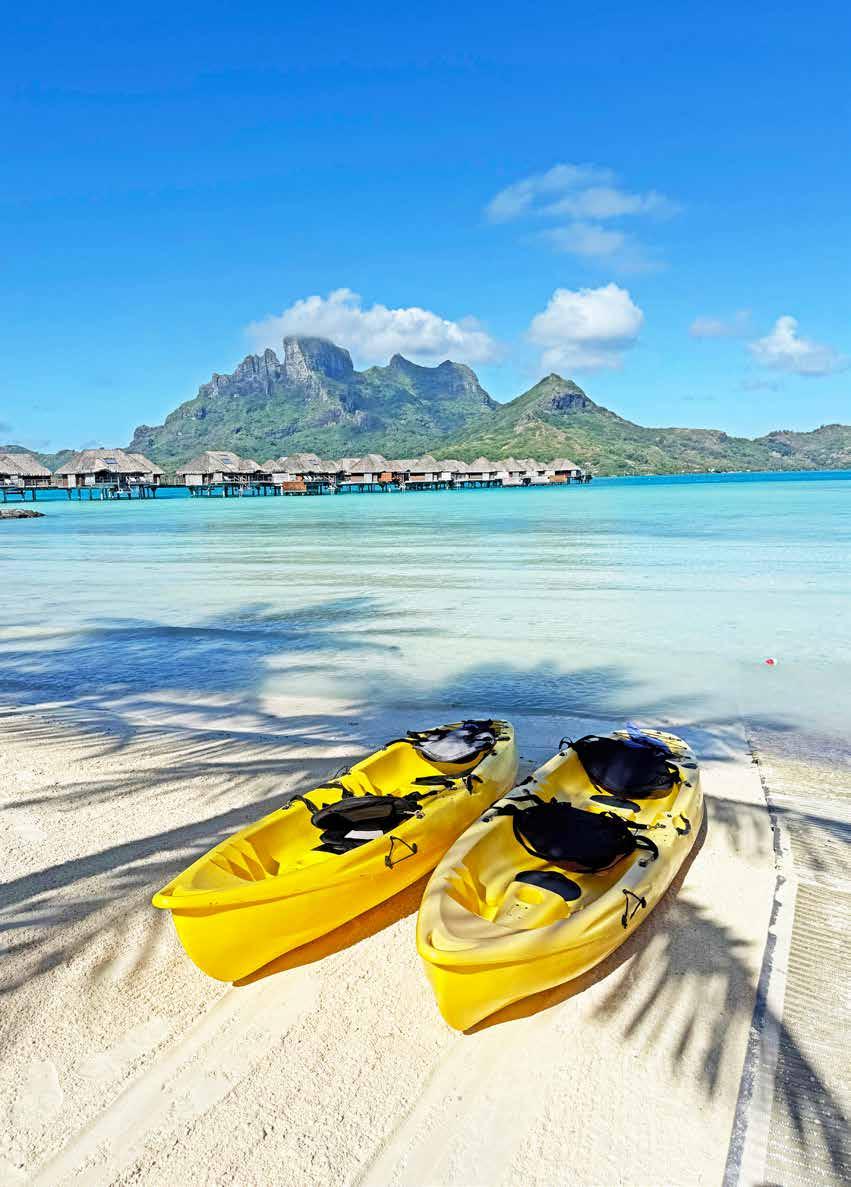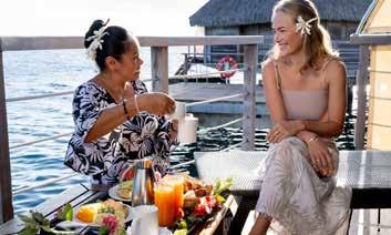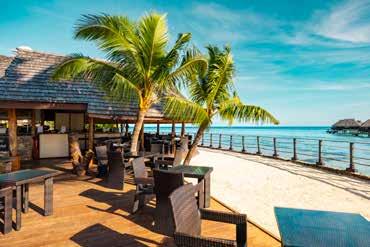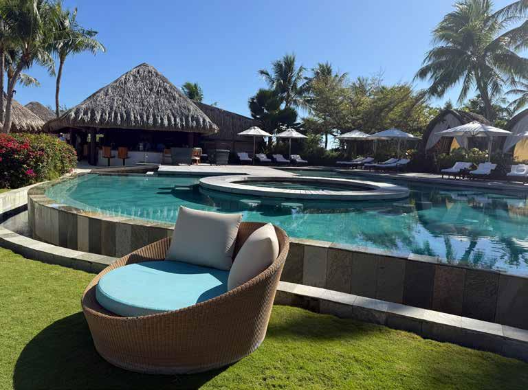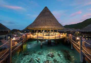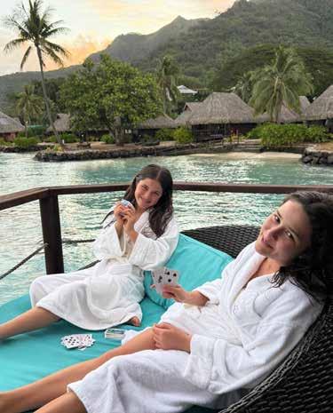 The food here is fresh, vibrant and full of flavour, with a strong focus on local ingredients. Every meal feels like an occasion, but if we had to choose a favourite, it would be Vaimiti, the waterfront Asian restaurant. From locally caught sashimi to the most tender beef stir-fry, it’s melt-inyour-mouth good. It’s also the perfect spot to sit out over the lagoon, sip a sake mojito and watch the sun slip behind Mount Otemanu.