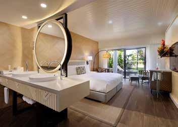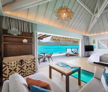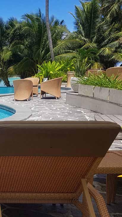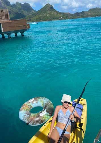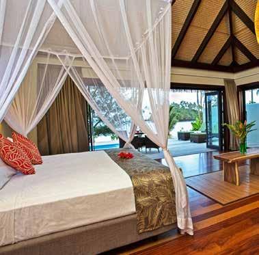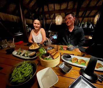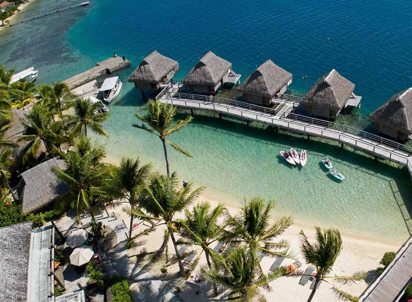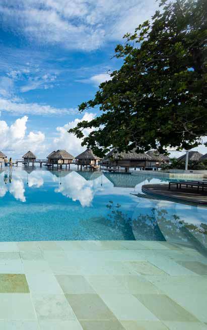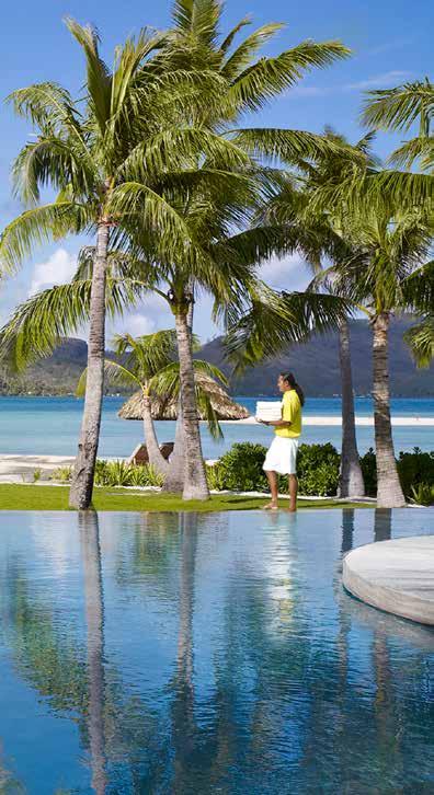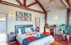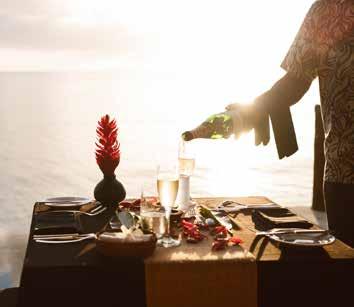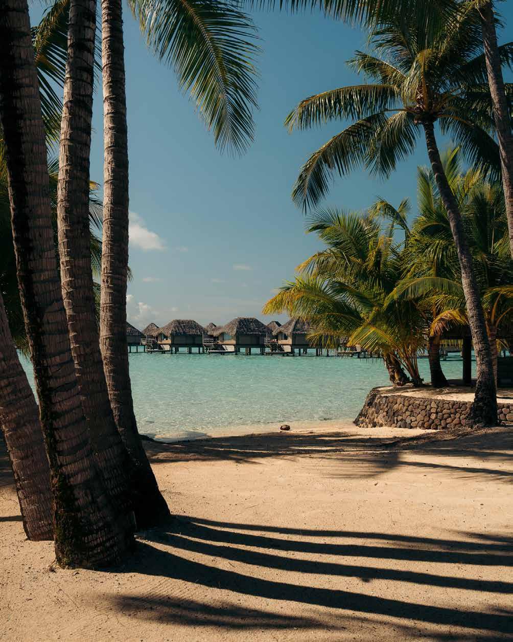 The food here is fresh, vibrant and full of flavour, with a strong focus on local ingredients. Every meal feels like an occasion, but if we had to choose a favourite, it would be Vaimiti, the waterfront Asian restaurant. From locally caught sashimi to the most tender beef stir-fry, it’s melt-inyour-mouth good. It’s also the perfect spot to sit out over the lagoon, sip a sake mojito and watch the sun slip behind Mount Otemanu.