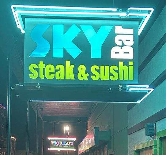 Sky Steak and Sushi Bar offers a unique fusion of premium steaks and exquisite sushi in an elegant, modern setting. Enjoy expertly grilled steaks, fresh sashimi, and innovative sushi rolls. The best time to visit is during their reverse happy hour for $2 select sushi and $6.50 martinis, from 5-10 p.m. Monday-Thursday, 5-11 p.m. Friday, and 9-11 p.m. Saturday. Tell them Island Vibe sent you!