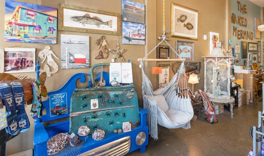 Opened in November 2011, The Naked Mermaid is a locally owned boutique specializing in artisanal gifts, home décor, furniture, and locally made treasures. Far more than a typical tourist shop, it showcases a carefully curated mix of local artistry, unique furnishings, and one-of-a-kind finds, making it a must-visit when exploring Galveston’s historic downtown. The added touch of “wine-while-you-browse” creates a relaxed, inviting atmosphere that perfectly complements its quirky, creative offerings.
