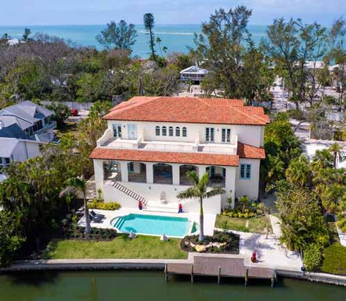 Located on the north end of Siesta Key, this custom-built luxury waterfront home sits on a very private lot, surrounded by lush tropical landscaping and offers deep-water access, boating convenience, and serene natural beauty. The flexible layout includes 5 en-suite bedrooms, an elevator to all three levels, and a spacious main-level suite ideal for guests or multigenerational living. An engineerapproved option to remove a non-load-bearing wall allows for easy creation of a great room concept—a virtual rendering is included in the photo gallery to illustrate the potential. The chef’s kitchen features GE Monogram and Fisher & Paykel appliances, a butler’s pantry, beverage station, and pocketing glass doors opening to a full summer kitchen, PebbleTec saltwater pool and spa, and lush outdoor spaces. Hurricane-rated windows and doors, elevated construction, and a full-home generator protected the interior during recent storms—no water intrusion or damage occurred, with water reaching only the garage level. Extras include a 13,000 lb. lift, composite dock, 3-car garage with EV charger, whole-house water filtration, security system, and ample storage.