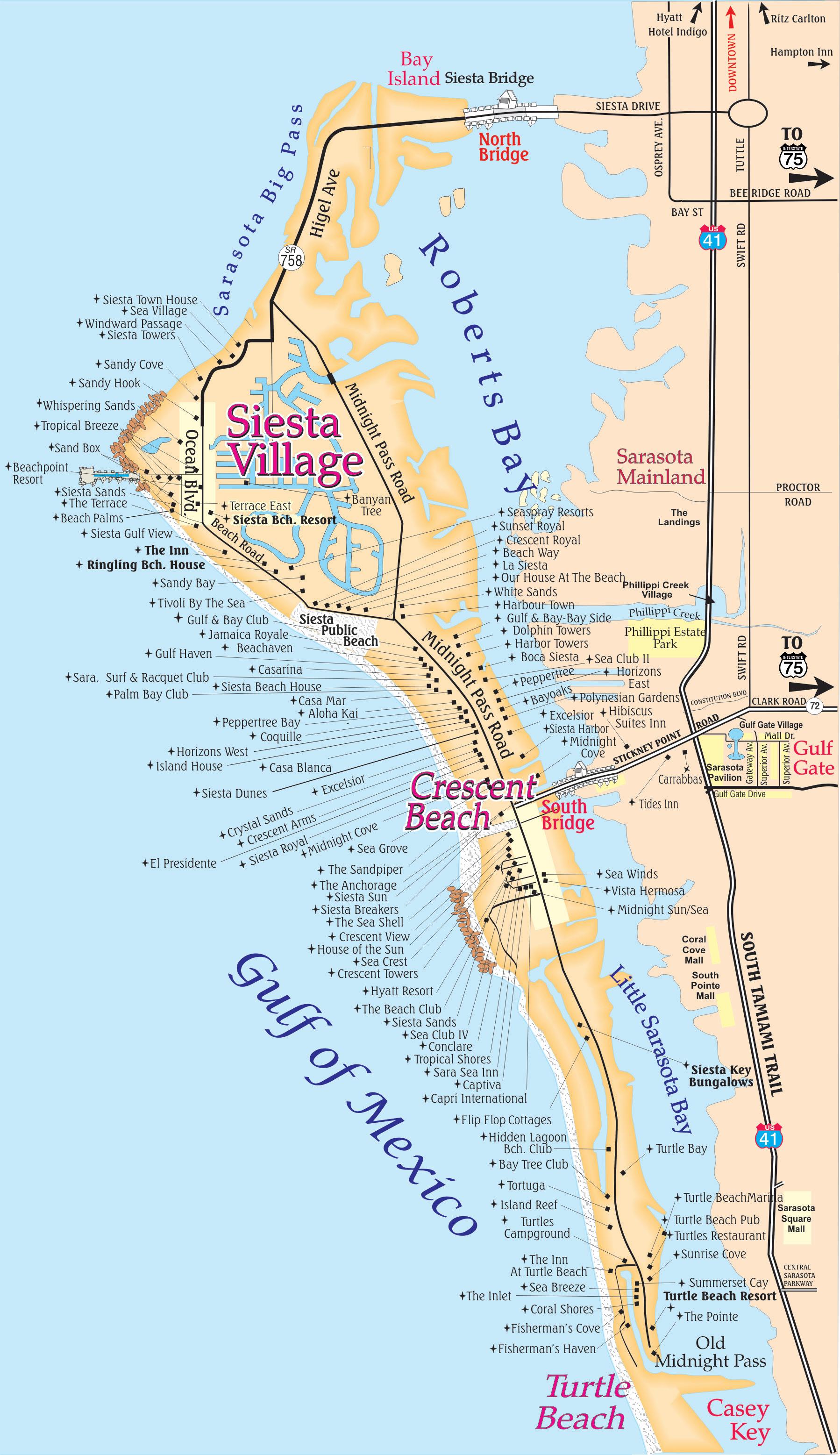 to three of Siesta Key’s favorite restaurants or ride the trolley to Siesta Key Village for dining and shopping. Minutes away from downtown Sarasota.