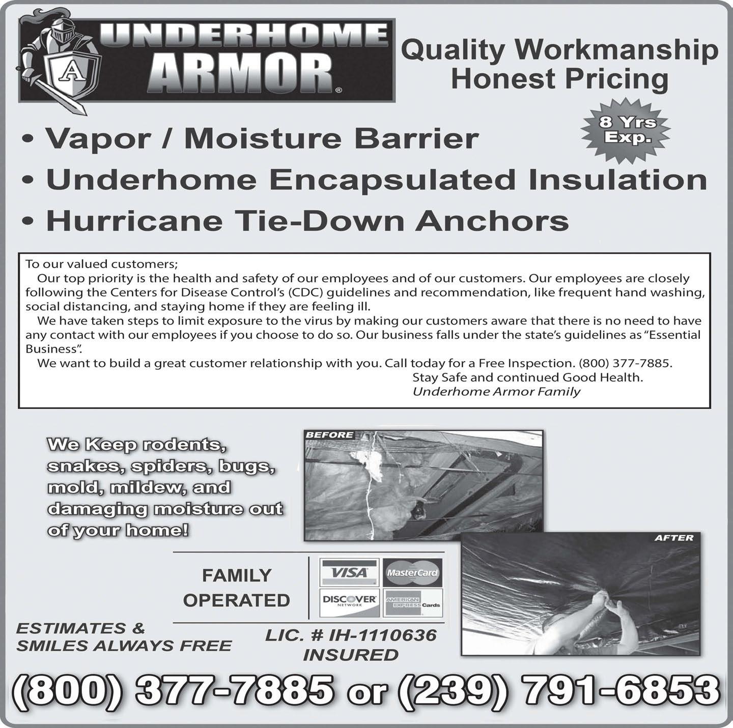 1345 Old Pondella Rd. Cape Coral, FL. 33909 u Guaranteed 100% Satisfaction u Quality Workmanship u On Time Scheduling u Drug-Free Workplace u No Sub Contractors u Family Owned & Operated u Fast Free Estimates u Shingle, Metal, Flat & Re-Roofs u Roof Repairs u Seamless Gutters u Soffit & Fascia u Licensed & Insured CCC1325883 Your Roof Covering Is The Umbrella That Gives You “Peace Of Mind” Don’t Wait For The Calm Before The Storm… We’re Waiting For Your Call 239-549-ROOF (7663) info@roofsmartflorida.com www.roofsmartflorida.com Military Discounts Senior Discounts RONALD COLE