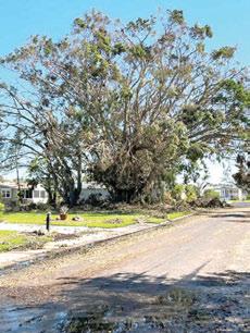 and storms, and it survived. Ian did not take her away from Del Tura. She is beaten and bruised, but I have been told by the tree people she will survive, although it will take time. They have removed the dead limbs, and they plan on primping and pruning what is left. She will be back! The tree is like so many material items in our community. We have damage, but nothing that cannot be fixed. It will not happen overnight, but it will happen. We are here to talk about the storm; unlike many others who were not so fortunate.