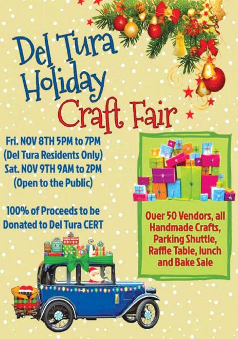 We have over 50 vendors of handmade craft items for your shopping pleasure. Parking shuttle, Raffle Tables, Bake Sale items and luscious food will be available. Our proceeds will be donated to Del Tura CERT needs. Registration for vendors, both resident and public, has been open since May 1st and we are happy to be able to provide our shoppers with many gift choices again this year. This is also a great opportunity to get to visit with our returning “Snowbird” friends.