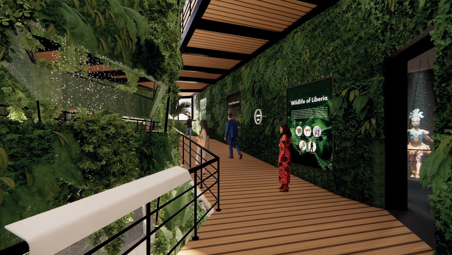 the rainforest exhibition is an immersive experience that allows visitors to learn about tropical trees in Liberia, sustainable tourism and the forest of production.