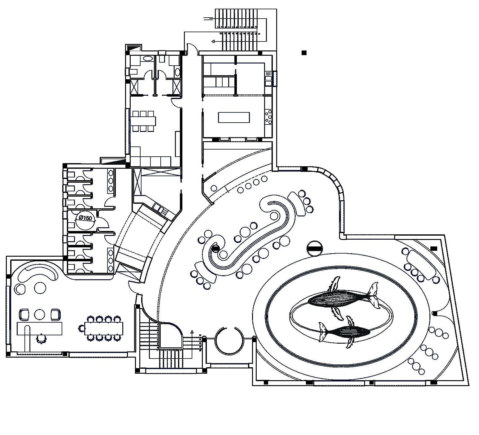 The first level contains Led screens that give information about the fauna and flora of the country, sustainable tourism recommendations and investment opportunities.