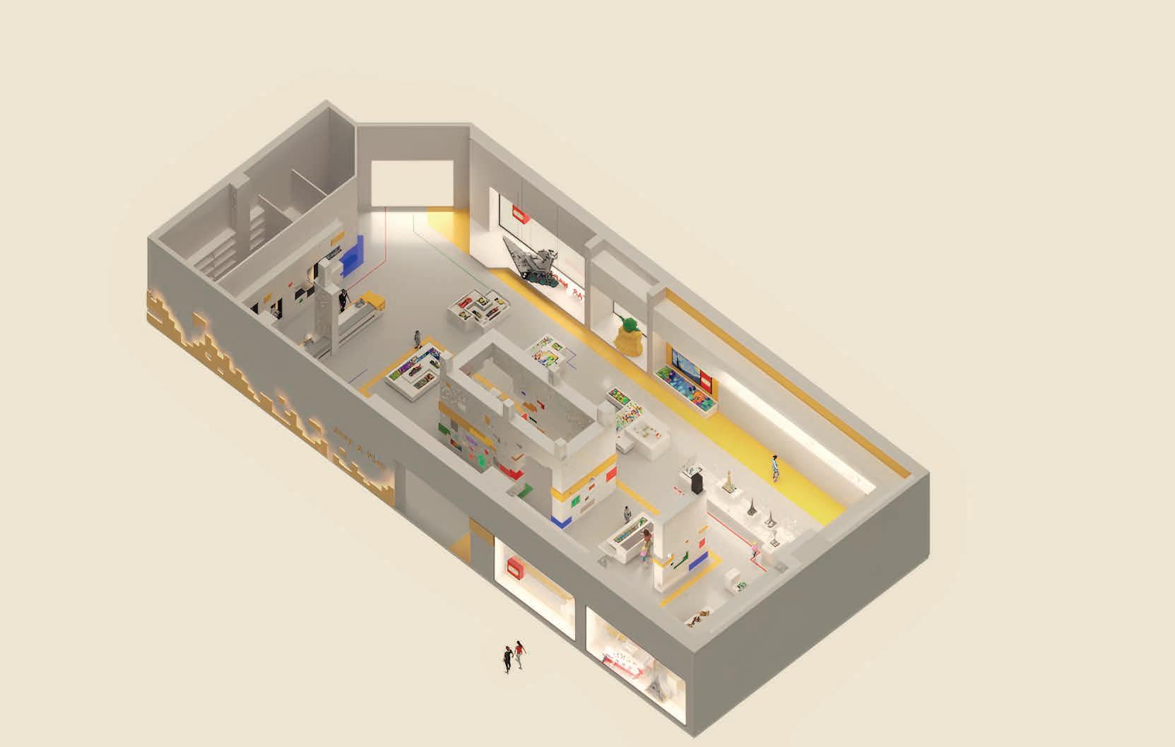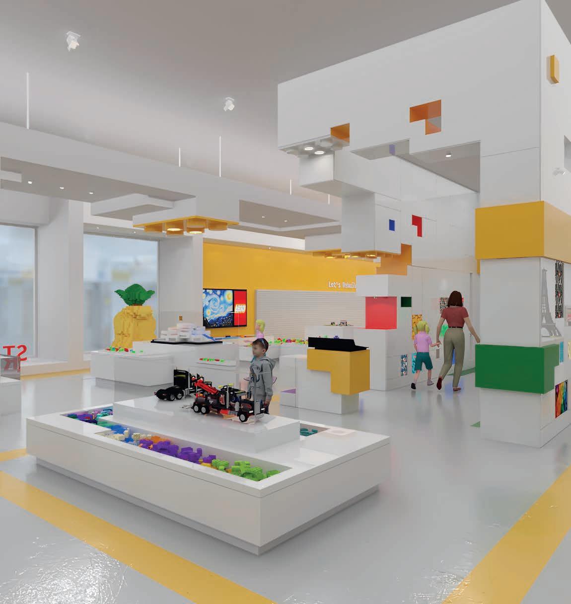 This project aims to design a store that satisfies children’s needs, especially hyperactive children who cannot resist touching stuff in stores. When playing with construction toys such as Lego bricks, children can be as creative as they want. It is one of the games that fulfil their need, providing them with the most useful skills. In this store, kids are allowed to touch whatever they want, this is a shopping and playing experience.