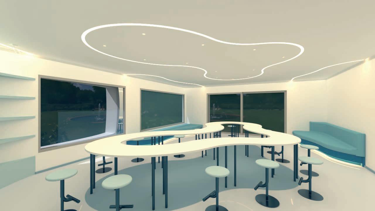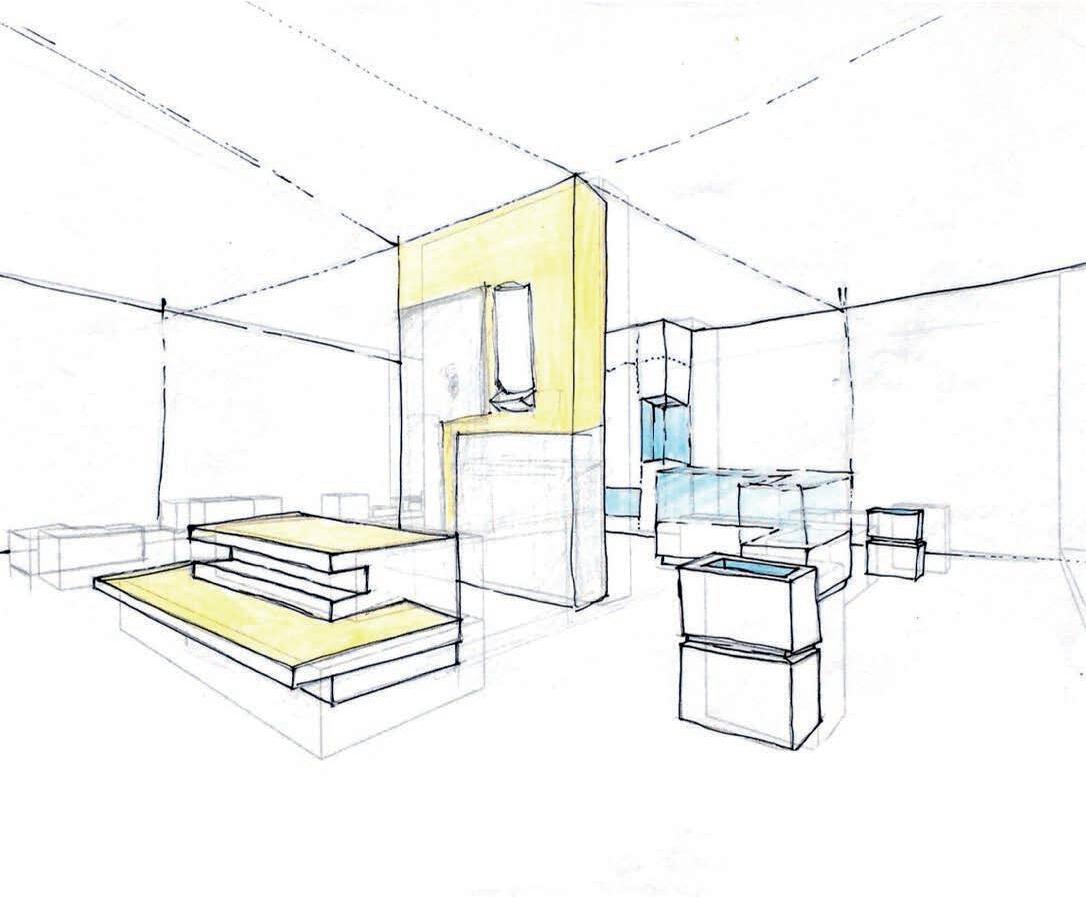I chose yellow as the dominant color in the space because it promotes activity, interaction , and boosts memory and communication
