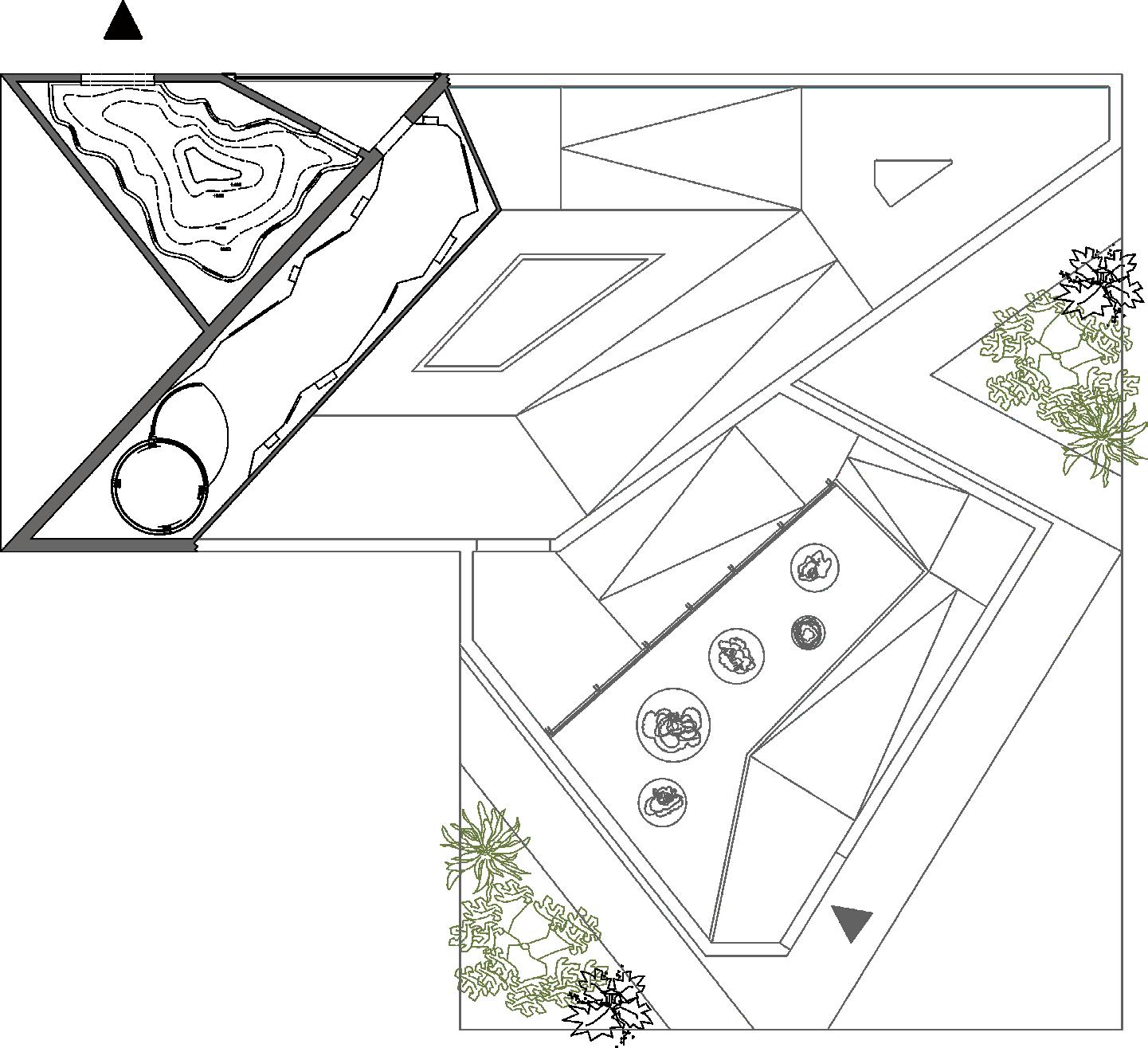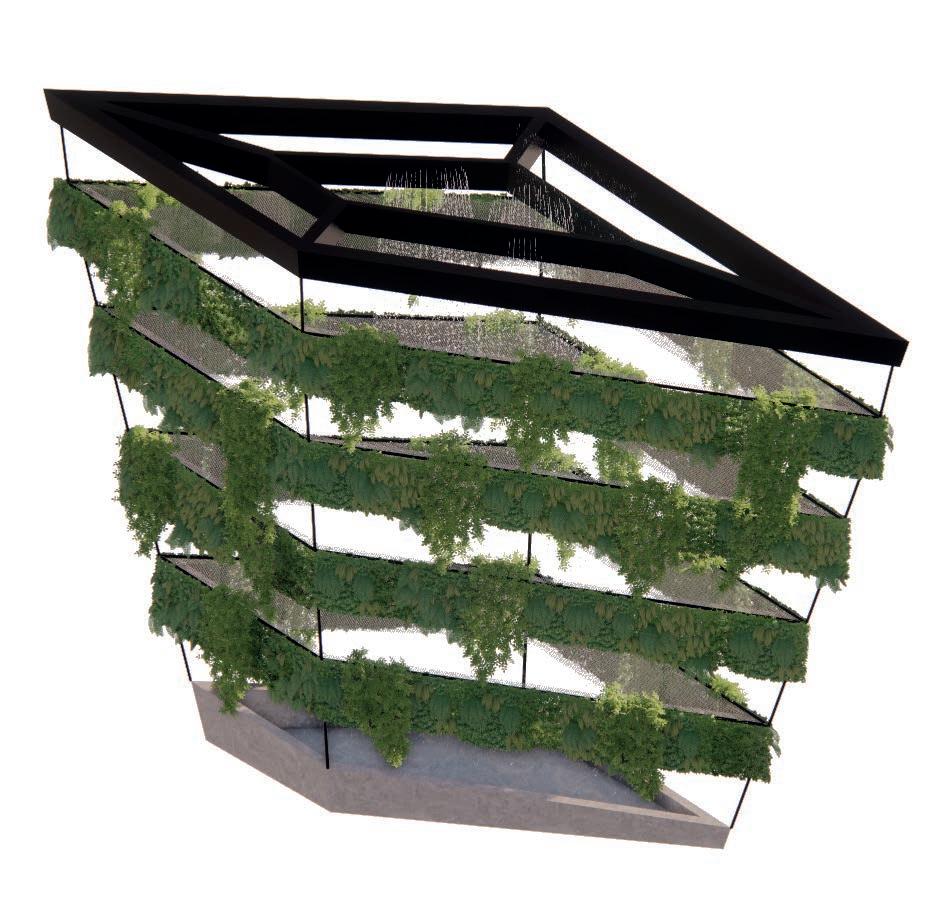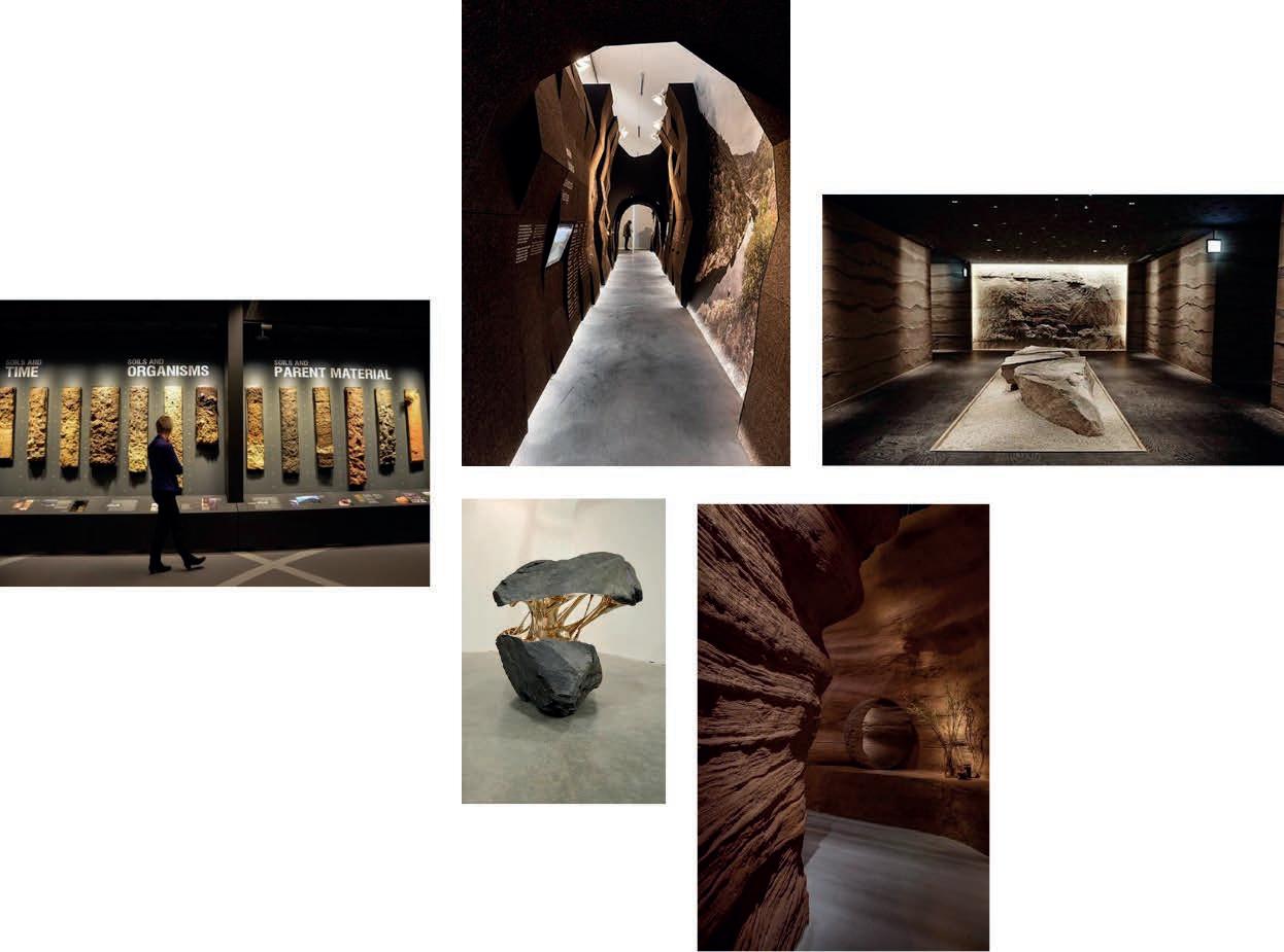 This exhibition is a ramp structure divided into two levels with a giant vegetal cone in the centre.