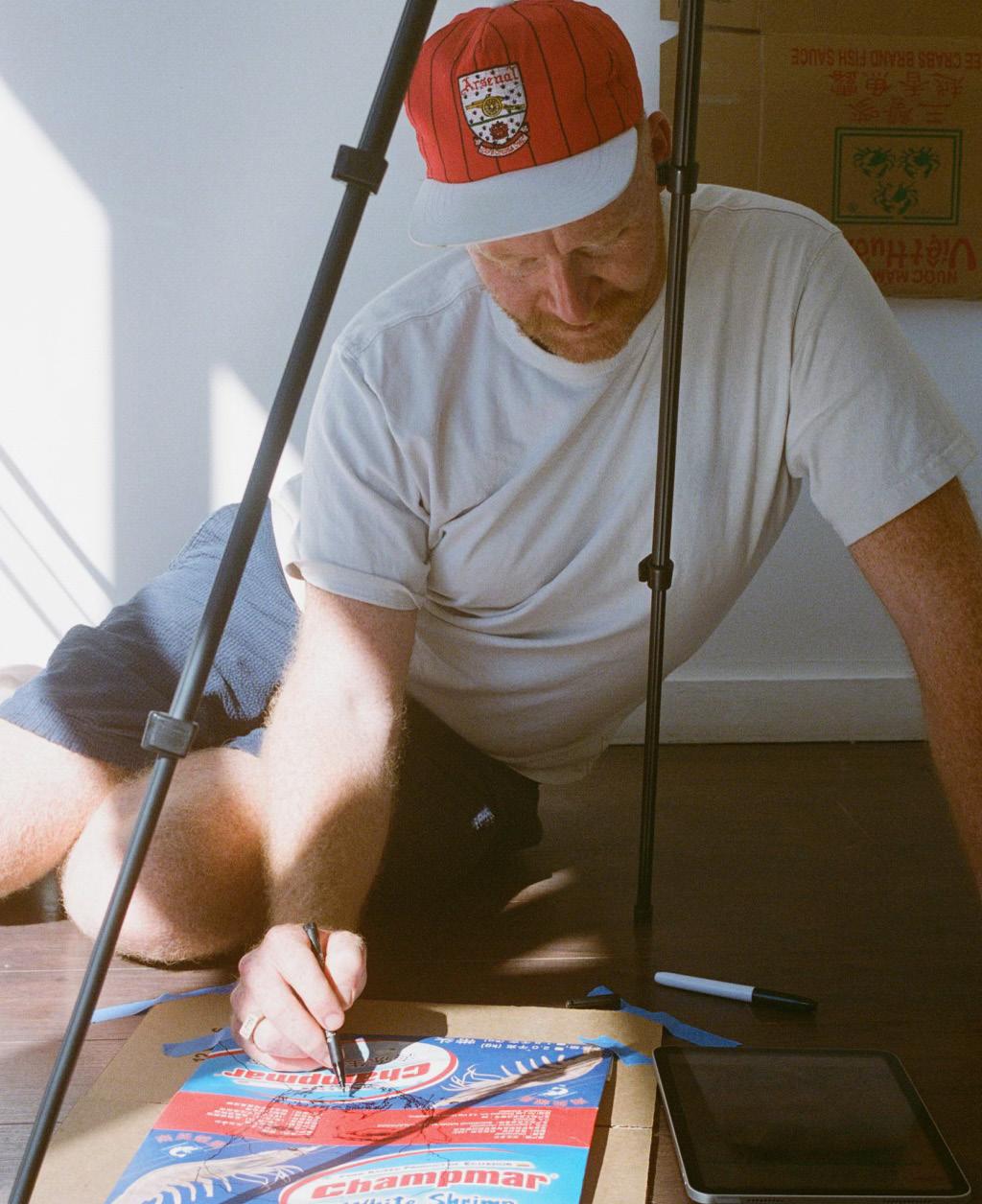 In 2023 Freddie worked on a project with stallholders at Chapel Market, drawing their portraits on pieces of packaging that they used on their stalls.