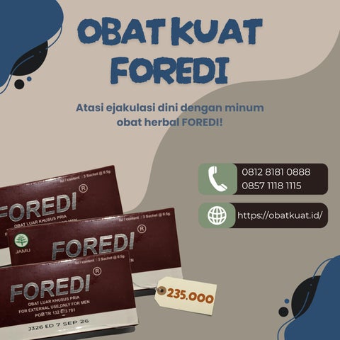 Obat kuat Foredi merupakan solusi terpercaya untuk mengatasi ejakulasi dini dan meningkatkan keperkasaan pria. Dijual di apotek resmi, produk ini memiliki izin BPOM sehingga aman dan tanpa efek samping. Penggunaannya memberikan sensasi yang berbeda dalam hubungan intim, meningkatkan kualitas dan performa di atas ranjang. Dengan harga Rp.235.000 per box, Foredi hadir sebagai solusi terjamin untuk keharmonisan dalam hubungan rumah tangga.
