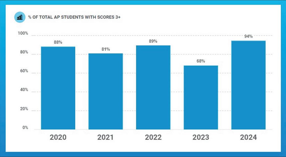 We are proud to announce that the 2024 AP Scores have been released and ISM students have amazed us once again! 94% of students earned a 3 or higher, with the average AP score being a 4 amongst all test takers. Way to go Huskies! Currently, 18 AP® courses are offered at ISM, and of those, our students are able to complete up to 13 AP® courses by graduation.