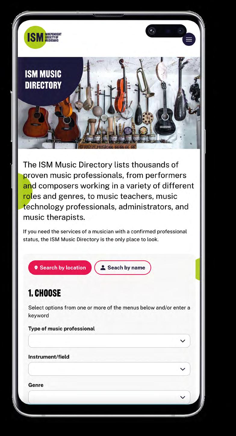 The ISM Music Directory is the UK’s only online directory of musicians and music teachers with verified professional credentials. ISM members can use this to promote themselves to the public for free. Remember to keep your profile up to date. musicdirectory.ism.org