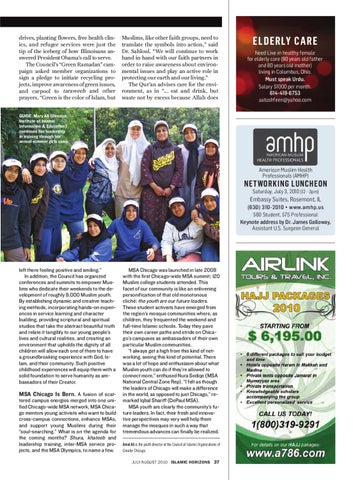_______________________________ Amal Ali is the youth director at the Council of Islamic Organizations of Greater Chicago. JULY/AUGUST 2010 ISLAMIC HORIZONS 37