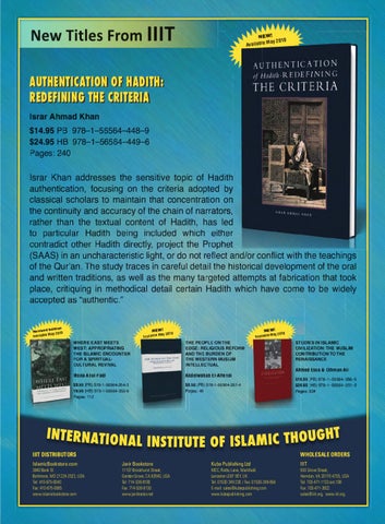 AUTHENTICATION OF HADITH: REDEFINING THE CRITERIA Israr Ahmad Khan $14.95 PB 978–1–56564–448–9 $24.95 HB 978–1–56564–449–6 Pages: 240