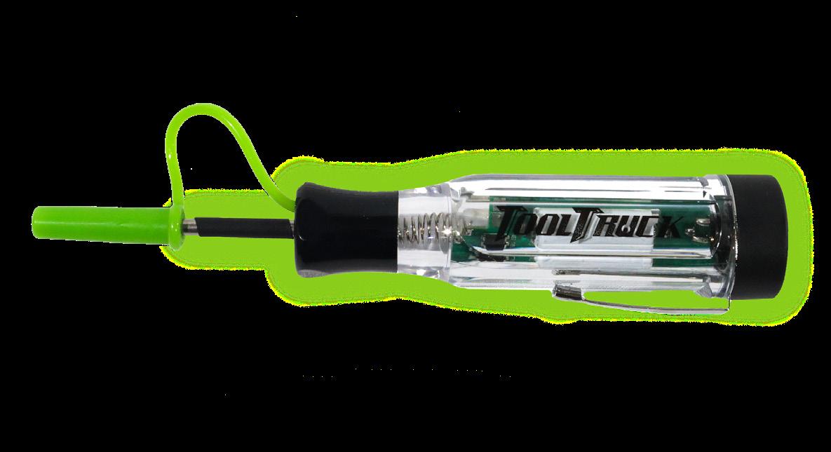 • Bright LED indicator shows voltage presence, polarity, and circuit continuity