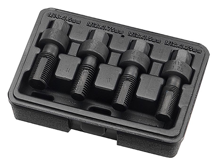 13PRICES ARE SUBJECT TO VAT WHERE APPLICABLE - IMAGES FOR ILLUSTRATION PURPOSES HAND TOOLSFOLLOW US ON SOCIALS @TOOLTRUCK-UK! Universal Locking Wheel Nut Removal Kit TT319RK • Very effective and a must have workshop tool • Kit includes shroud which protects the wheel against any damage • Simple to use master kit has the capability of removing practically any locking wheel nuts PROMO PRICE: £115.50 Blade A for TT319RK TT319RK-06 PROMO PRICE: £20.85 Blade B for TT319RK TT319RK-07 PROMO PRICE: £18.25 Blade C for TT319RK (10pk) TT319RK-0510PK PROMO PRICE: £62.50 7PC Super Duty Alloy wheel Sockets in EVA foam T200300-7PC • Nylon Sleeve protects alloy wheels from damage • Sizes: 17, 19, 21, 22mm & 17mm Mercedes, 21mm Hyundai, 27mm Land Rover PROMO PRICE: £80.40 4PC Wheel Internal Thread Kit T431410 • For use on vehicles that use wheel bolts. • M12×1.25: PSA, M12×1.5: Mercedes Benz and BMW, M12×1.75: Volvo, M14×1.5: VAG models • CRMO • Supplied in a Blow Mould Case PROMO PRICE: £21.60 Centre-Lock Nut Socket for Porsche T431160 • This tool is designed to remove or install center-lock wheel nuts on Porsche 997, 991, GT2 and GT3 models. • Drive 3/4 inch, tightening torque if necessary above 500Nm PROMO PRICE: £59.30 5PC Wheel Hanger Set T411200 • Save energy and time when changing tires and wheels • Also provides easier work for disc brake services, preventing brake disc from wobbling • Includes: M12 × P1.5, M12 × P1.5, M14 × P1.25, M14 × P1.5 & M16 × P1.5 PROMO PRICE: £37.50 Ideal when fitting wheel spacers: aligns the bolt holes, spacer and wheel together. Particularly useful when replacing the brake discs - the wheel hanger pin ensures that the holes in the new disc are perfectly aligned with the holes in the wheel hub. Then the disc securing screws can be fitted with the wheel hanger pin in place 1/2"