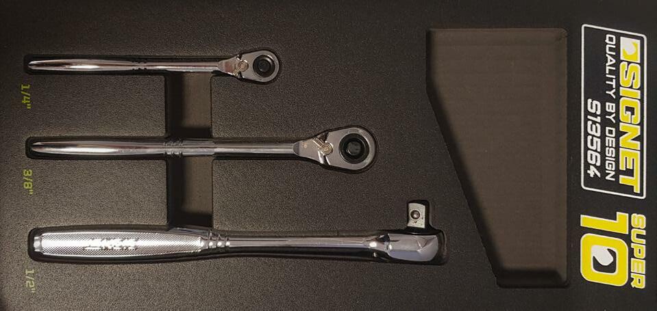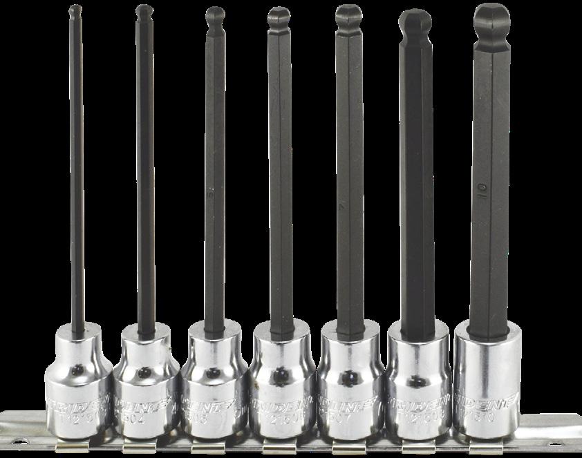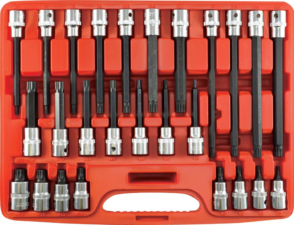 15 PC Ultra Low Profile Impact Sockets TT2673 • Made from a precision broached forged CR-MO • At 28mm long, these top quality sockets are 37% shorter than standard shallow impact sockets and 15% shorter than other stubby impact sockets • All sockets feature 22mm outside hex for increased access when used with a wrench • Includes Aluminum Socket Holder 14 PC Ultra Low Profile Impact Sockets TT3362 • Made from a precision broached forged CR-MO • At 22.5mm long, these top quality sockets are 35% shorter than standard shallow impact sockets and 15% shorter than other stubby impact sockets • All sockets feature a 17mm outside hex for increased access when used with a wrench. • Includes Aluminum Socket Holder • Size: 6mm-19mm PROMO PRICE: £33.95 3/8" 1/2" 6PT 6PT 10PC 1/2 Drive Deep Impact Socket Set T930101 • Includes: 21, 22, 23, 24, 27, 29, 30, 32, 33, 36mm • Length: 80mm • Supplied in a plastic case PROMO PRICE: £66.45 1/2" 6PT 1/4" 3/8" 1/2" 3PC ‘Super 10’ Ratchet 1/4, 3/8, & 1/2Dr EVA Foam Set S13564 • Includes: 1/4”, 3/8” & 1/2” • Supplied in EVA foam PROMO PRICE: £51.95 14PC E-TX Socket Set 1/4” 3/8” & 1/2” Drive E4-E24 S23630 • 1/4” Drive: E4, E5, E6, E7, E8 3/8” Drive: E10, E11, E12, E14, E16 1/2” Drive: E18, E20, E22, E24 • Supplied on a socket rail PROMO PRICE: £26.50 1/2" 1/2"