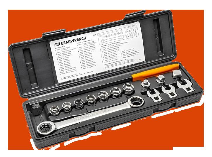 • Long bar and GEARWRENCH® ratcheting wrench provide maximum access and leverage