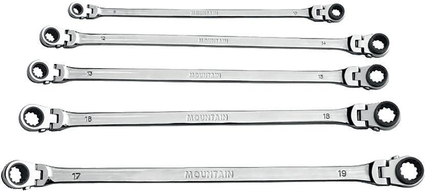 • Flexible, reversible heads for tight spaces; 90-tooth ratchet with 4° swing arc
