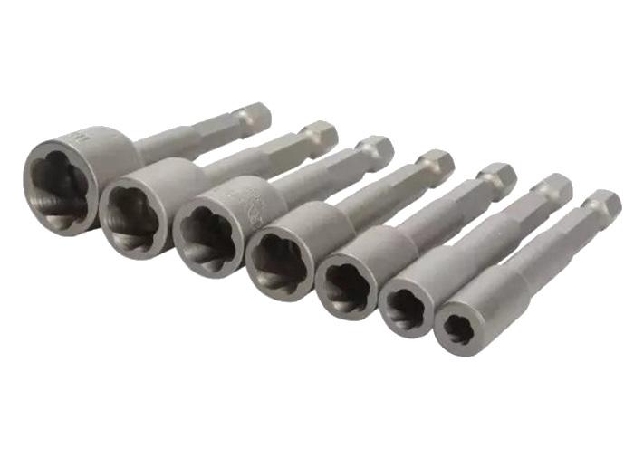 • 7-piece stud extractor set made from high-quality carbon steel, designed for rigorous use in professional and DIY projects. Compact 27mm length and lightweight 50g tools ensure ease of use in tight spaces