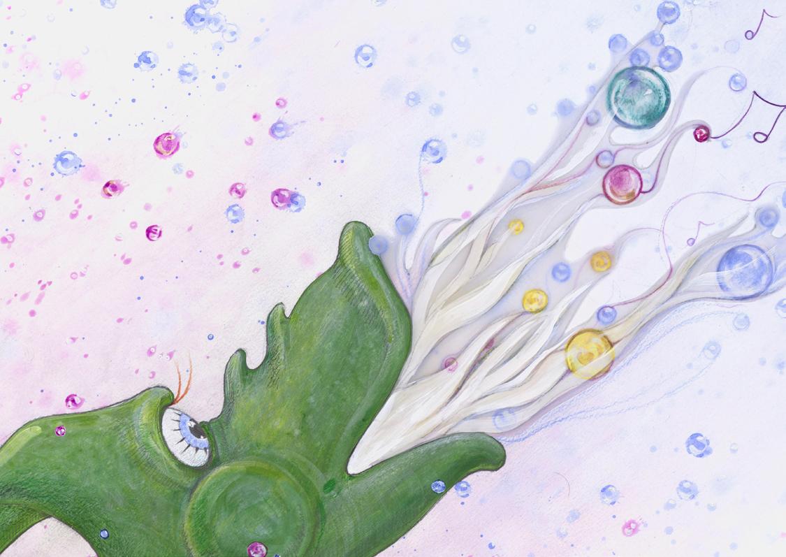 Het verhaal: de draak heeft een wens, maar die kan niet uitkomen omdat hij de kaarsjes op zijn verjaardagstaart steeds uitblaast. Hij gaat te rade bij verschillende dieren die kunnen blazen: de kat, de gans en de kikker. De draak probeert dit te imiteren, maar het lukt niet. Zijn beste vriendin is Berta Bever. Berta is ook de naam van het kindje waarvoor we de benefiet hielden. Berta Bever heeft een spleet tussen de tanden. Als bever is dat een handicap, maar door die spleet kan zij mooi fluiten, ook in het orkest. Ze neemt de draak mee naar het orkest waar hij leert blazen en dus zijn wens doet uitkomen. Intussen is dit de tweede uitvoering met de YoungStars. Het initiële benefietconcert, dat de aanzet vormde, dateert nog van voor de coronacrisis.